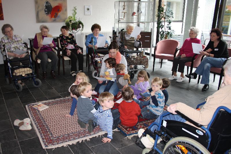 Regelmäßig freuen sich unsere Bewohner freuen über die Besuche der "Kleinen" aus dem benachbarten Zwergenstübchen.