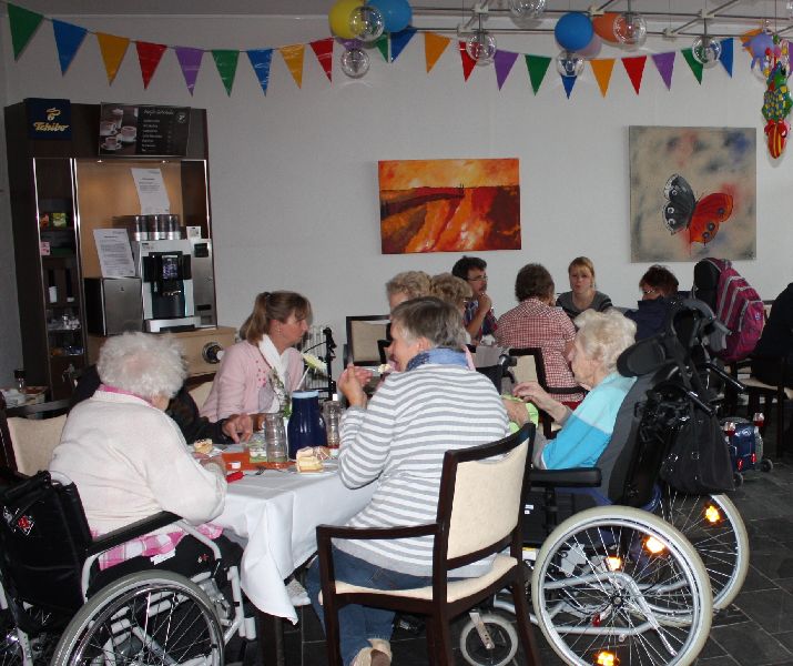 Unter dem Motto „ Kunterbunter Zirkus“ wurde den Bewohnern, Angehörigen und Besuchern ein mit Luftballons, bunten Clowns, Holzponnys und bunten Girlanden geschmücktes Haus, welches an eine Zirkusarena erinnerte, präsentiert. Nach dem gemeinsamen Kaffeetrinken mit dem reichhaltigen Kuchenbuffet, eröffnete Heimleiter Marcus Draheim, verkleidet als Zirkus-Direktor, das Fest mit einer spaßigen Ansprache.